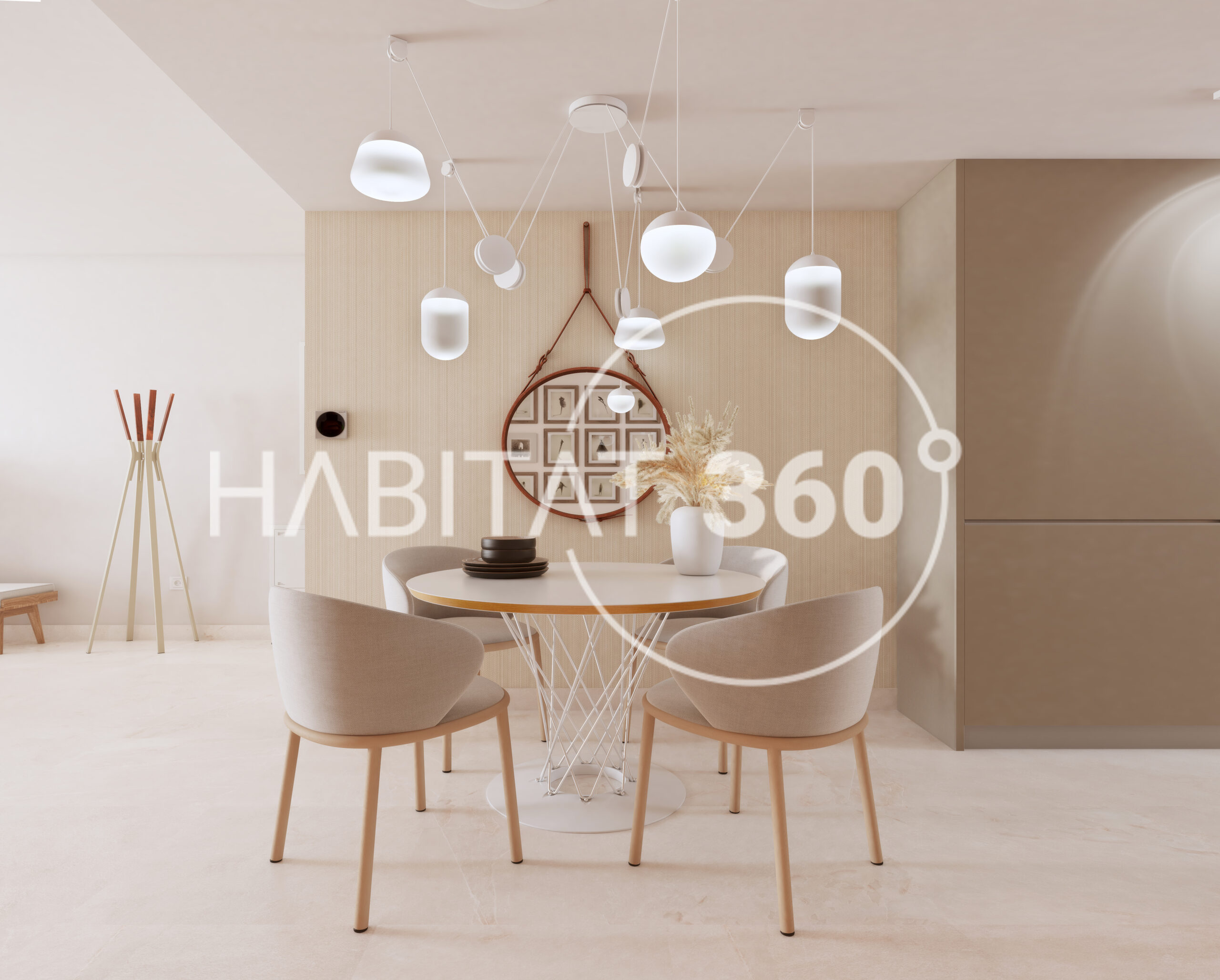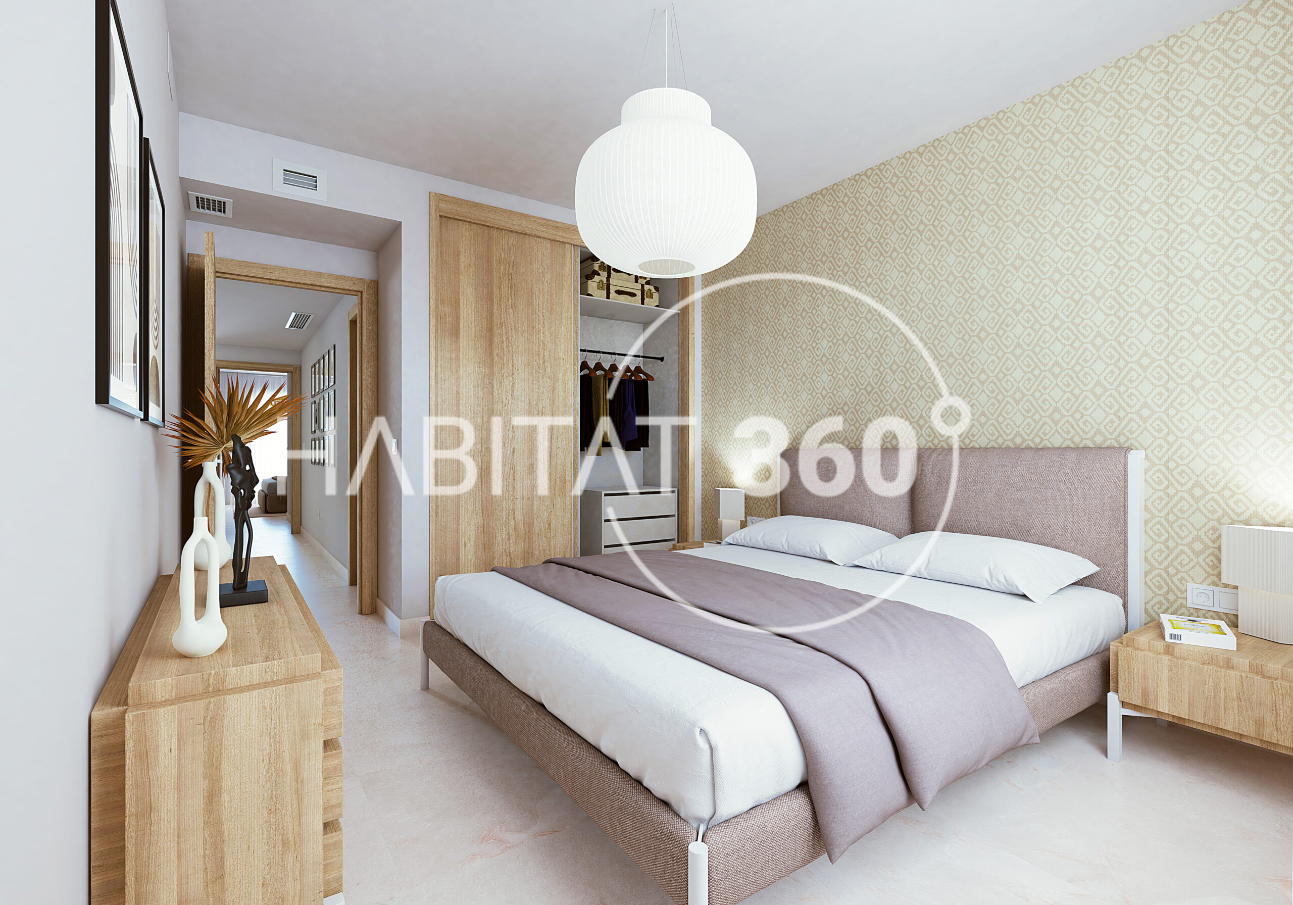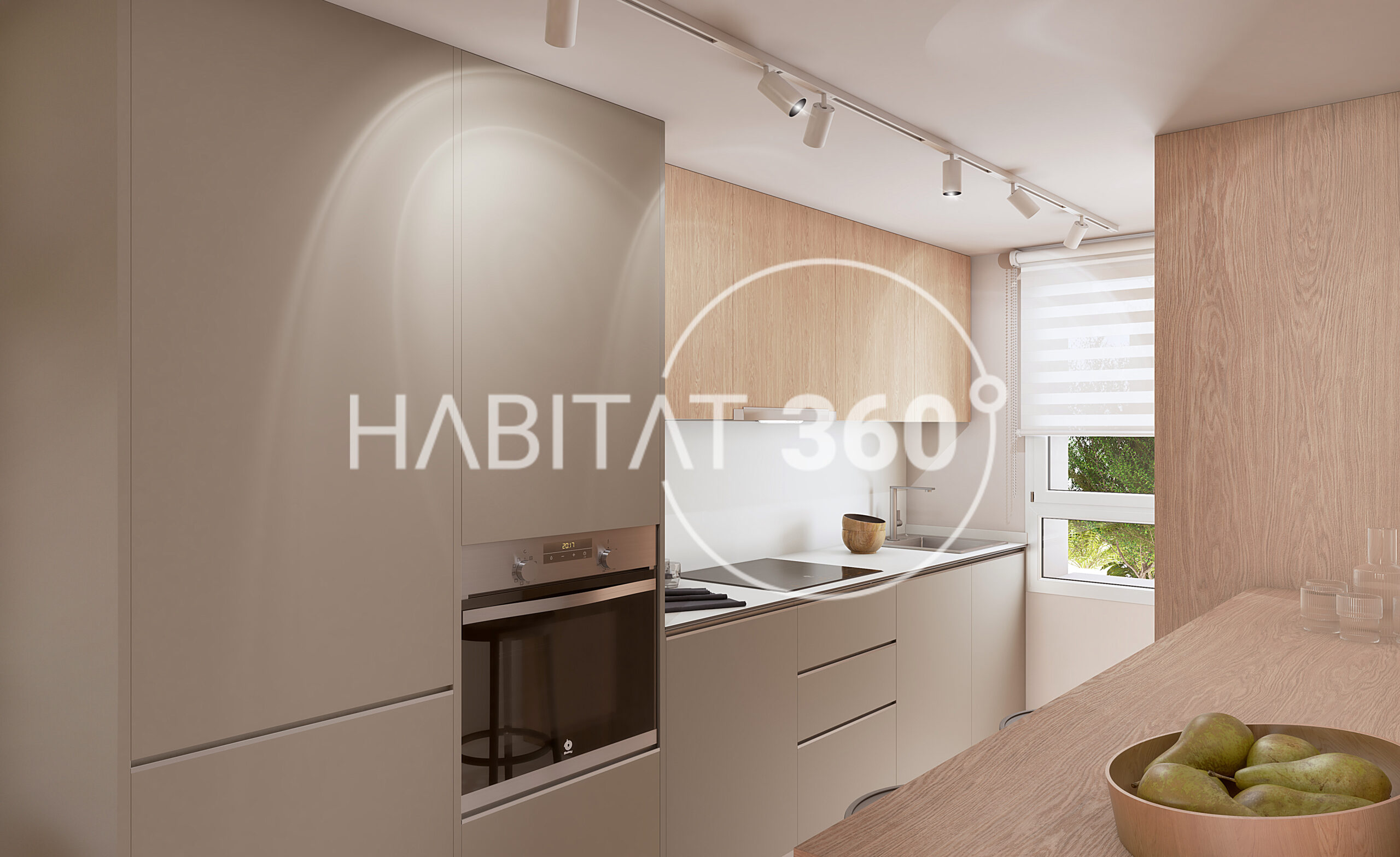 Los apartamentos de 2 y 3 dormitorios y 2 baños cuentan con un amplio salón abierto a la terraza e integran la cocina en el salón, consiguiendo así máxima luminosidad y sensación de amplitud.